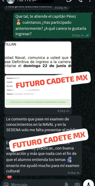Gracias a Futuro Cadete MX, logré superar mis exámenes y cumplir mi sueño de ser cadete.